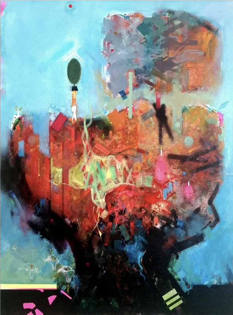 The expressionistic works reveal a synthesis of classical oil techniques and modern abstraction, combining meticulous Old Master layering with luminous color and tactile depth.