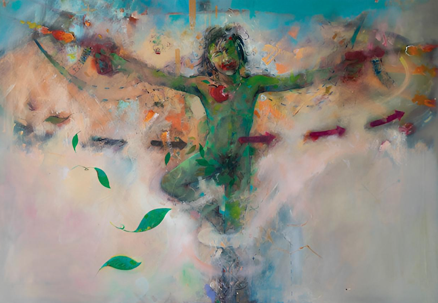Christ surveys humanity from the cross, extending a hand to the anguished.